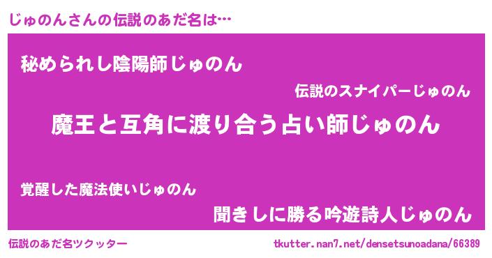 | 意味不明あだ名 | 『住所不定無職じゅのん(68歳)』 |