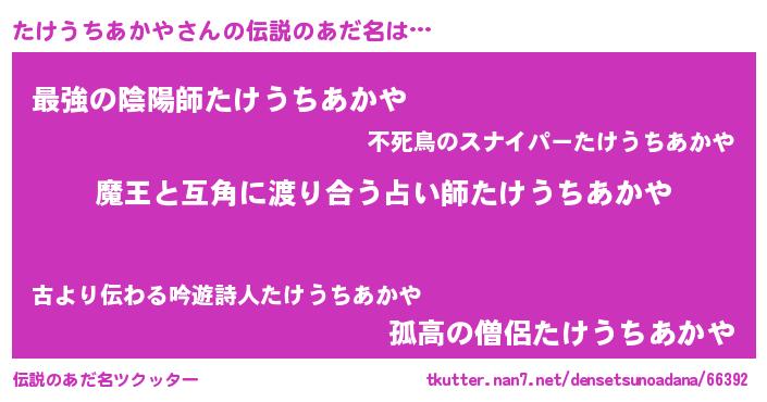 | 女子向けラノベタイトル風あだ名 | 『たけうちあかや恋絵巻』 |