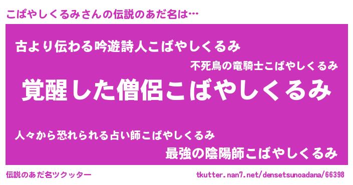 | 意味不明あだ名 | 『自称こばやしくるみ』 |