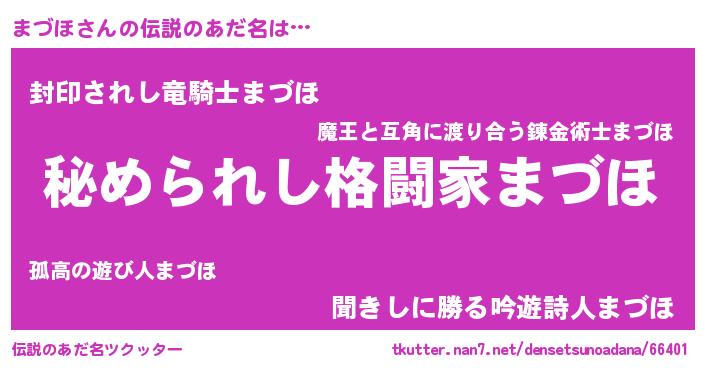 | ファンタジー風あだ名 | 『ゼマヅトゥ』『エターナルマヅホー』 |