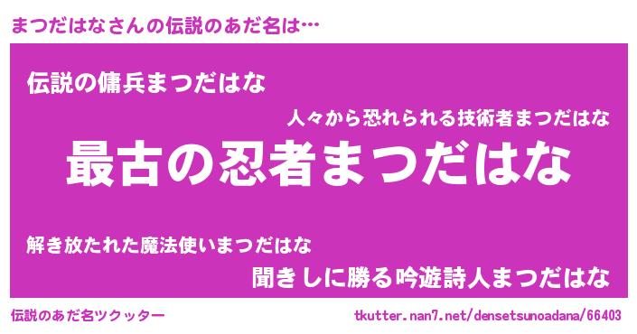 | ファンタジー風あだ名 | 『エターナルマツダハナー』『マツフェル』 |
