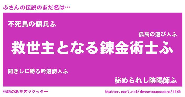 | ヒーロー風カッコイイあだ名 | 『天空の使者ふ』『サイバー戦士フ』 |