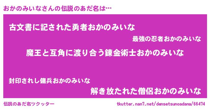 | 恥ずかしいあだ名 | 『オカノミイナデラックス』『おかちん』 |