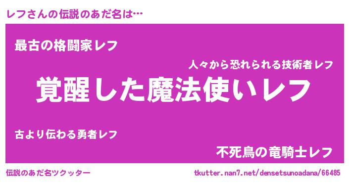 | 男性向けラノベタイトル風あだ名 | 『レフに滅ぼされるだけの簡単なお仕事です』 |