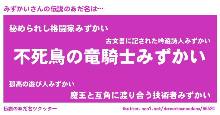 | ヒーロー風カッコイイあだ名 | 『仮面ミズダー』『スーパーミズカイ』 |