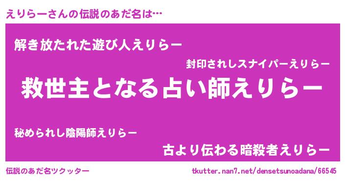 | ヒーロー風カッコイイあだ名 | 『仮面エリダー』『友情の使者えりらー』 |