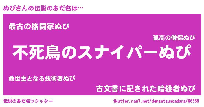 | 胡散臭い通販商品みたいなあだ名 | 『モテモテ間違いなし霊験あらたかなお札…その名も「ぬぴ」』 |