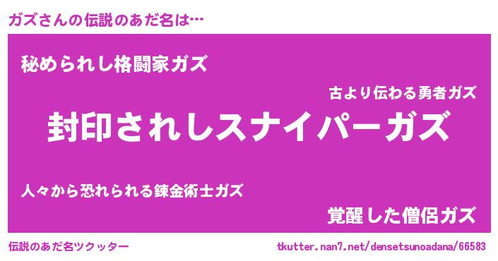 | 男性向けラノベタイトル風あだ名 | 『この素晴らしい世界にガズを!』 |