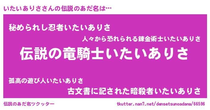 | 意味不明あだ名 | 『住所不定無職いたいありさ(7歳)』 |