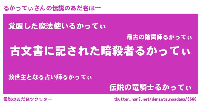 | 意味不明あだ名 | 『自称るかってぃ』『永久保存るかってぃ』 |