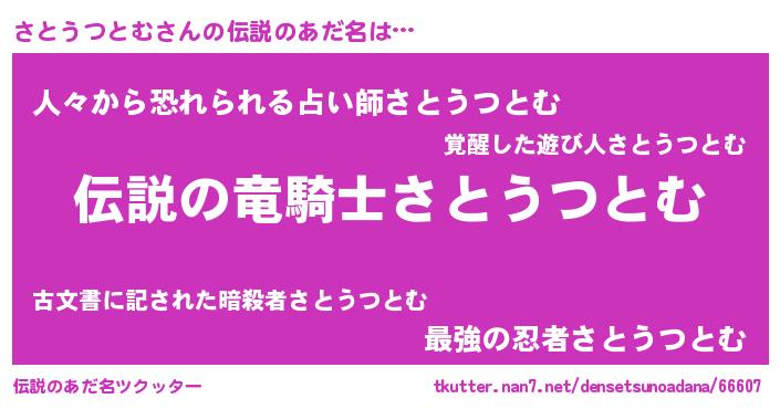 | 意味不明あだ名 | 『自称さとうつとむ』 |