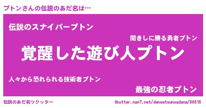 | ヒーロー風カッコイイあだ名 | 『炎刃騎士プト』『超時空戦士プトン』 |