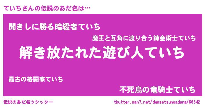 | 女子向けラノベタイトル風あだ名 | 『ていちの卵を拾いまして』 |