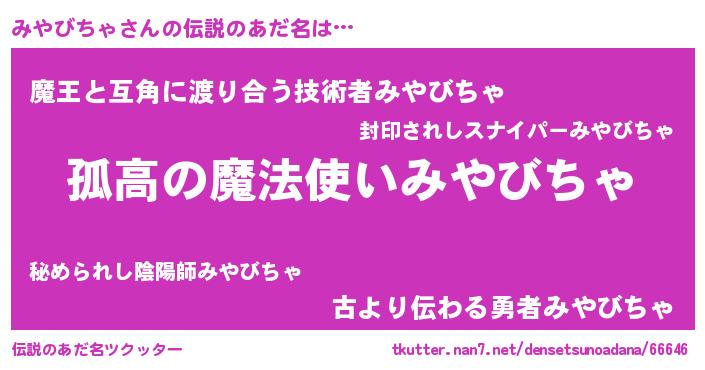 | ヘコむあだ名 | 『みや太郎』『みやびちゃ(笑)』 |