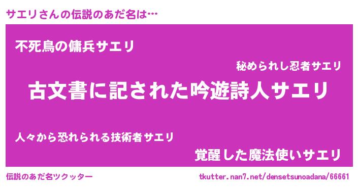 | ファンタジー風あだ名 | 『サエディッシュ』『ゼサエトゥ』 |