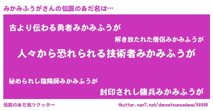 | 意味不明あだ名 | 『住所不定無職みかみふうが(13歳)』 |