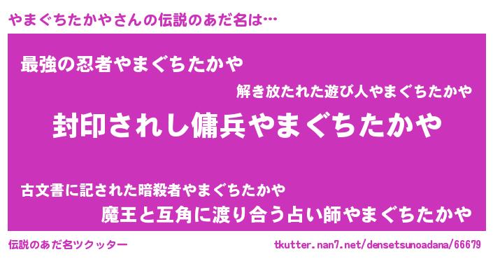 | ヒーロー風カッコイイあだ名 | 『スーパーヤマグチタカヤ』 |