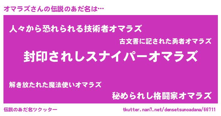| ヒーロー風カッコイイあだ名 | 『スーパーオマラズ』『愛の使者オマラズ』 |