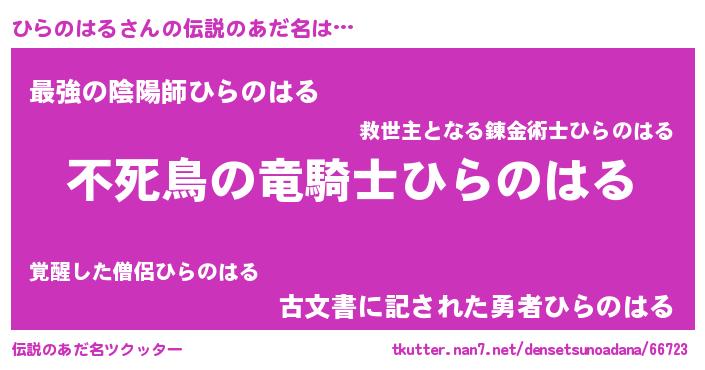 | 男性向けラノベタイトル風あだ名 | 『この素晴らしい世界にひらのはるを!』 |