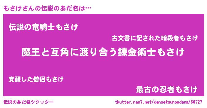 | ヒーロー風カッコイイあだ名 | 『愛の使者もさけ』『スーパーモサケ』 |
