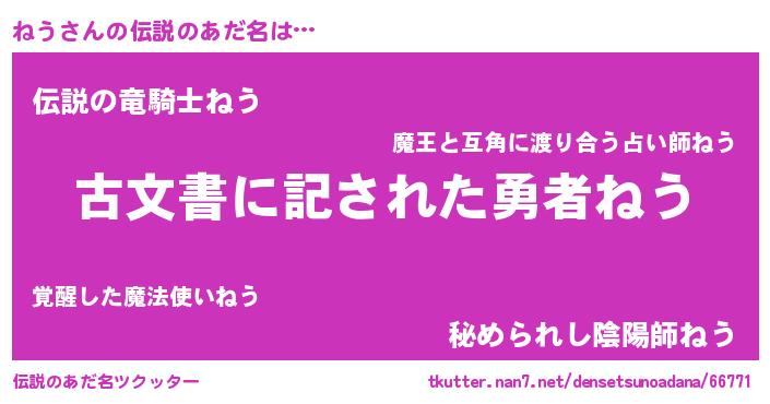 | ヒーロー風カッコイイあだ名 | 『ネオネウ』『仮面ネウダー』 |