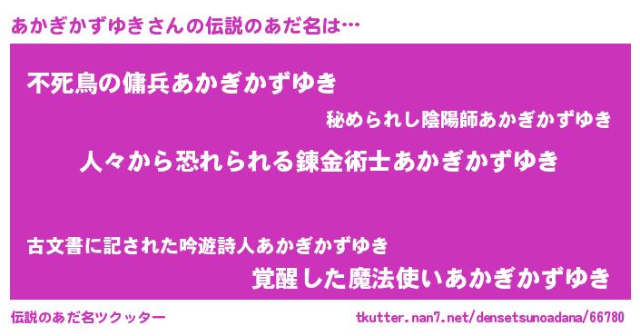 | 意味不明あだ名 | 『眠気覚ましガムあかぎかずゆき味』 |