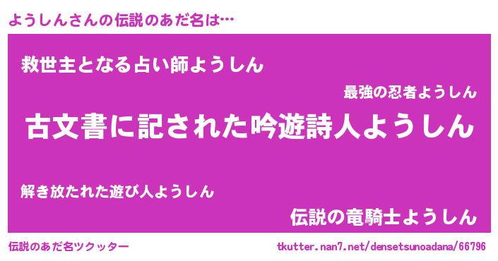 | ヘコむあだ名 | 『ようしん(笑)』『ようにゅー』 |