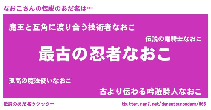 | ヘコむあだ名 | 『豆乳』『なおこ(小並感)』『なおお』 |