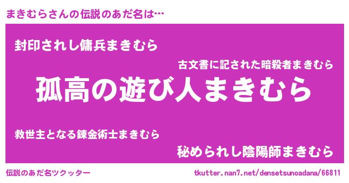 | 男性向けラノベタイトル風あだ名 | 『マキムラスレイヤー』『まきむらの憂鬱』 |