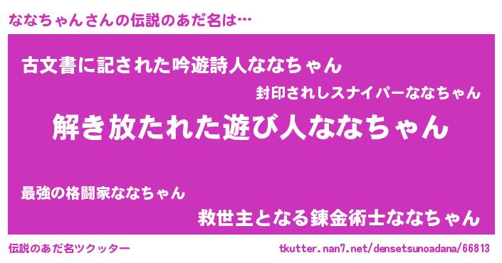 | ヒーロー風カッコイイあだ名 | 『魔戒騎士ナナ』『ネオナナチャン』 |