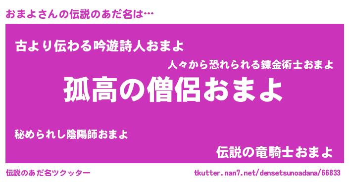 | ファンタジー風あだ名 | 『ファントムオマス』『ユリオマヴァット』 |