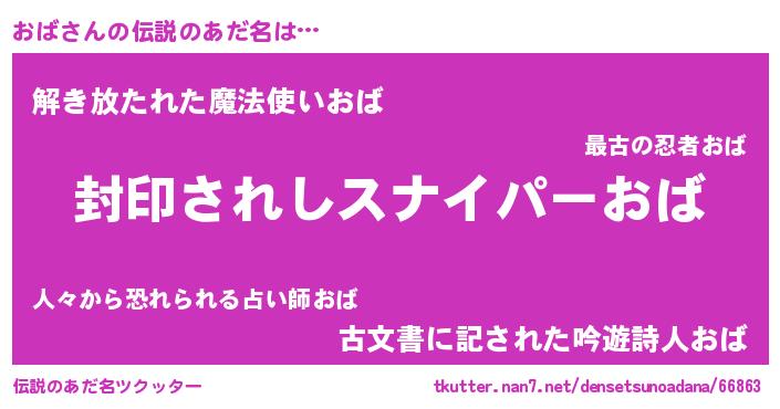 | ヒーロー風カッコイイあだ名 | 『仮面オバダー』『スーパーオバ』 |