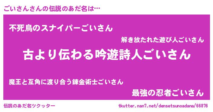 | ヒーロー風カッコイイあだ名 | 『仮面ゴイダー』『ネオゴイサン』 |
