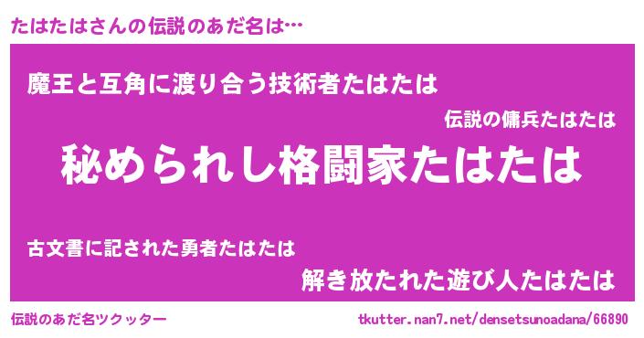 | ヒーロー風カッコイイあだ名 | 『超時空戦士タハタハ』『仮面タハダー』 |