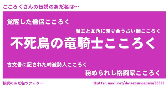 | ヒーロー風カッコイイあだ名 | 『スーパーココロク』『究極戦士ココロク』 |
