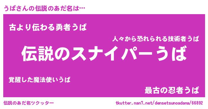 | 男性向けラノベタイトル風あだ名 | 『緋弾のウバ』『魔弾の王とうば』 |