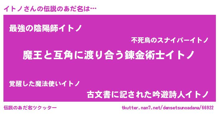 | ヒーロー風カッコイイあだ名 | 『愛の使者イトノ』『ウルトライトノマン』 |