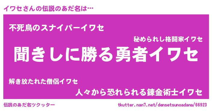 | 意味不明あだ名 | 『めかぶ科イワセ属』『永久保存イワセ』 |