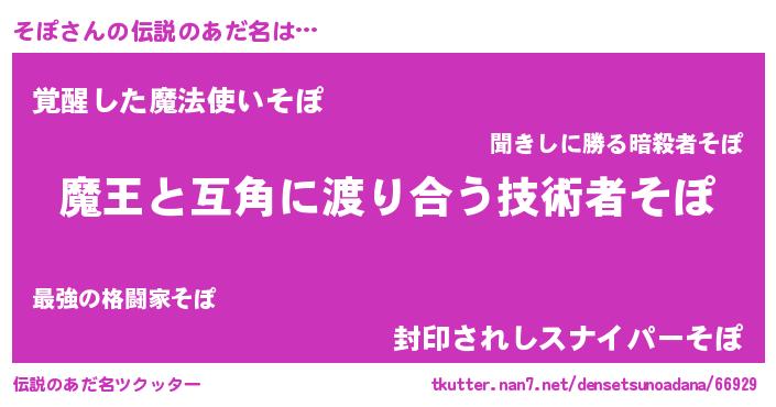 | ヒーロー風カッコイイあだ名 | 『愛の使者そぽ』『炎刃騎士ソポ』 |