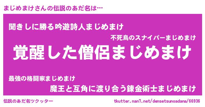 | 意味不明あだ名 | 『とにかく怪しいまじめまけ』 |