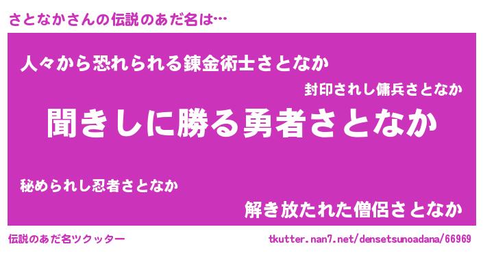 | 意味不明あだ名 | 『めかぶ科さとなか属』『自称さとなか』 |