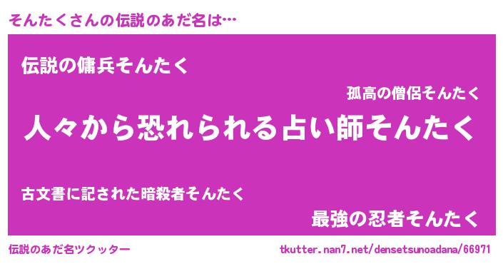 | ヒーロー風カッコイイあだ名 | 『仮面ソンダー』『サイバー戦士ソンタク』 |