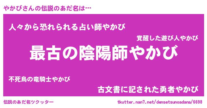 | 女子向けラノベタイトル風あだ名 | 『やかび伯爵の花嫁』『死神やかびの再婚』 |