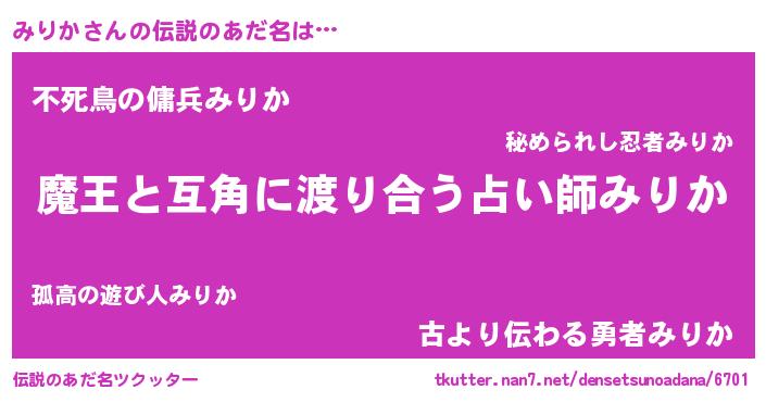 | ヒーロー風カッコイイあだ名 | 『仮面ミリダー』『愛の使者みりか』 |
