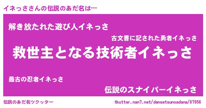 | 意味不明あだ名 | 『自称イネっさ』『ペロリンイネっさ』 |