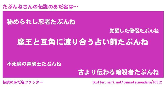 | ヒーロー風カッコイイあだ名 | 『慈愛の使者たぶんね』『ネオタブンネ』 |