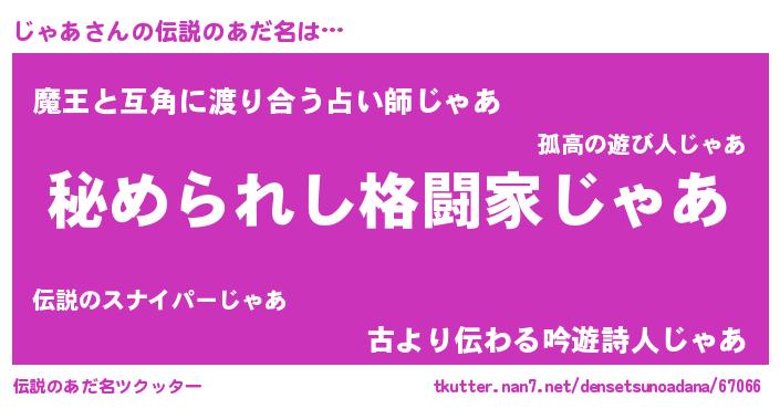 | ヒーロー風カッコイイあだ名 | 『ウルトラじゃあマン』『愛の使者じゃあ』 |