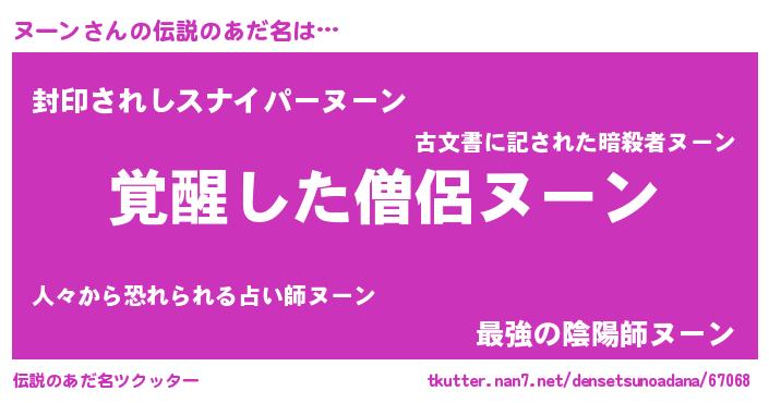 | 意味不明あだ名 | 『自称ヌーン』『ヨモギ科ヌーン属』 |