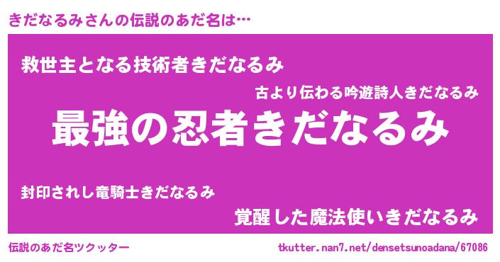 | 意味不明あだ名 | 『住所不定無職きだなるみ(59歳)』 |
