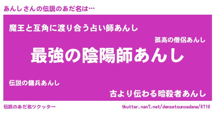 | 男性向けラノベタイトル風あだ名 | 『この素晴らしい世界にあんしを!』 |